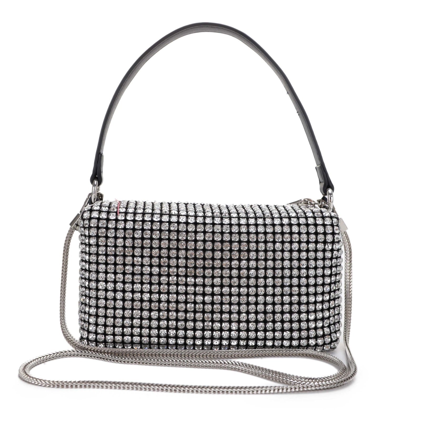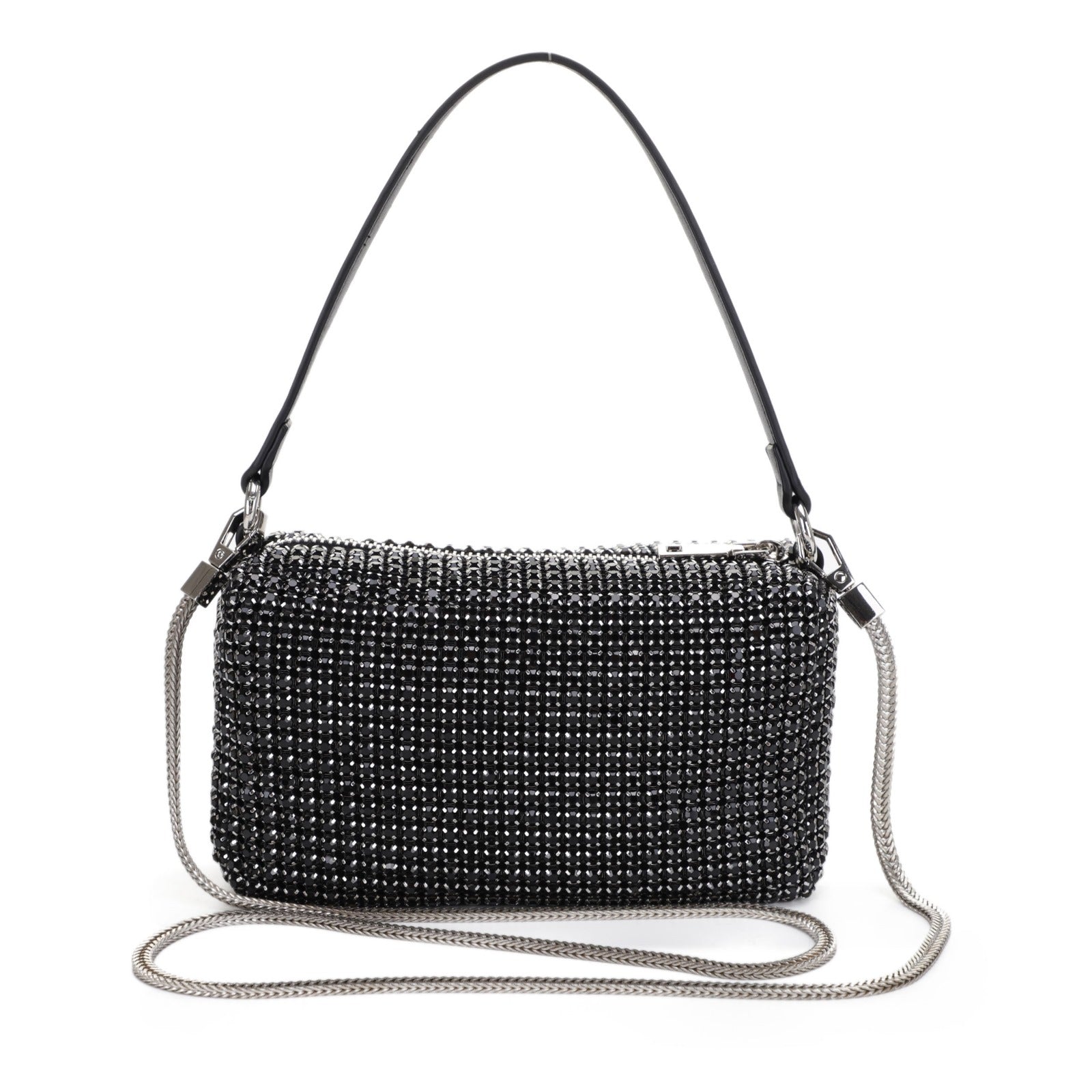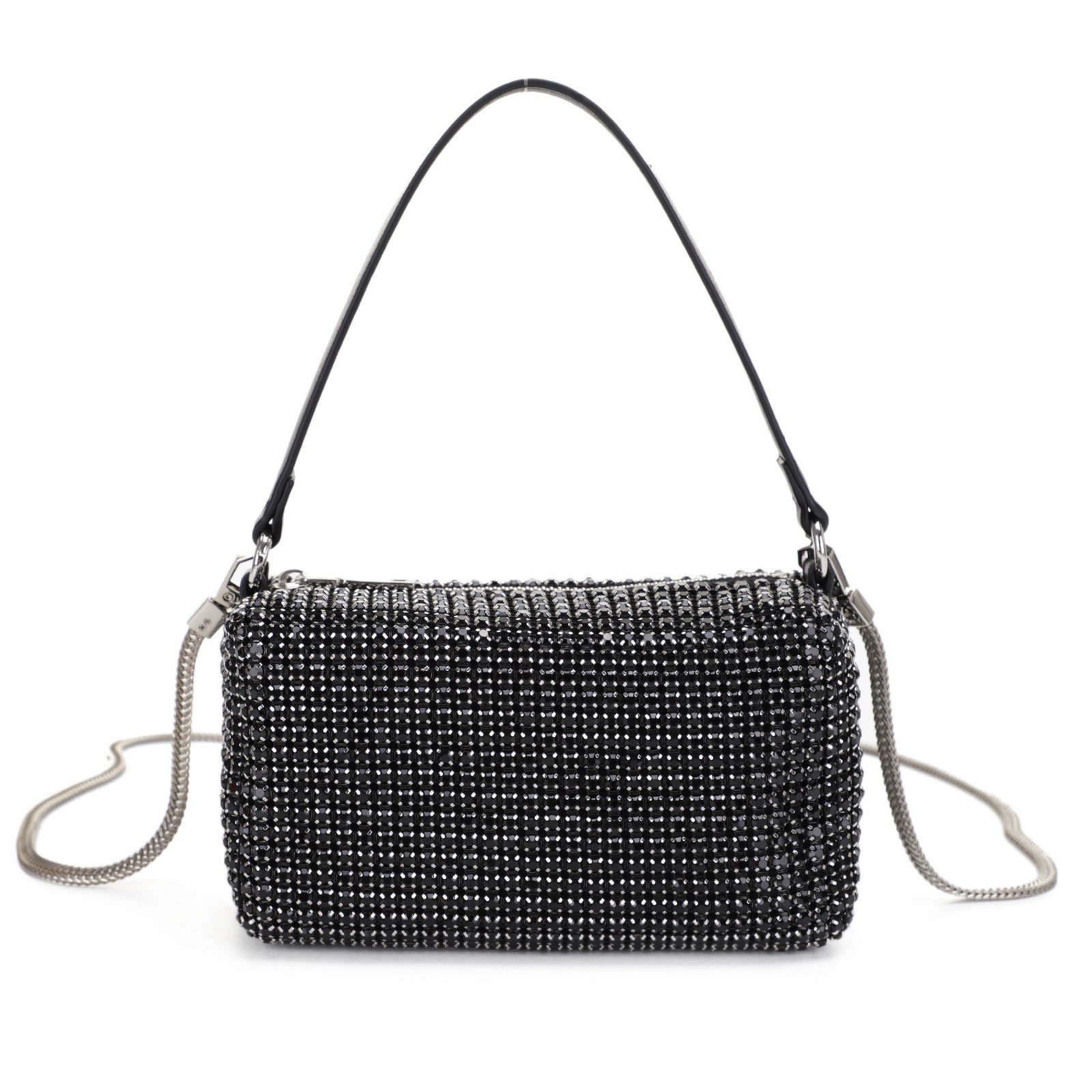 - Stone Embellished Shoulder Evening Pouch Bag with Crossbody Chain