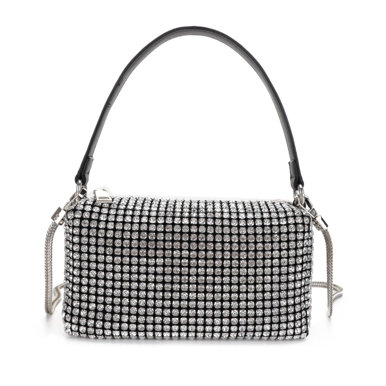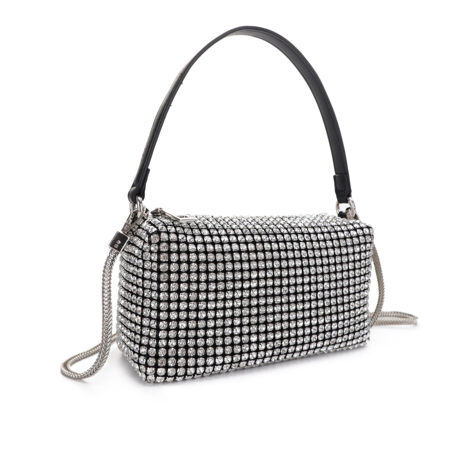Ladies mini formal hand purse made with all glass rhinestones. Detachable metal shoulder strap.