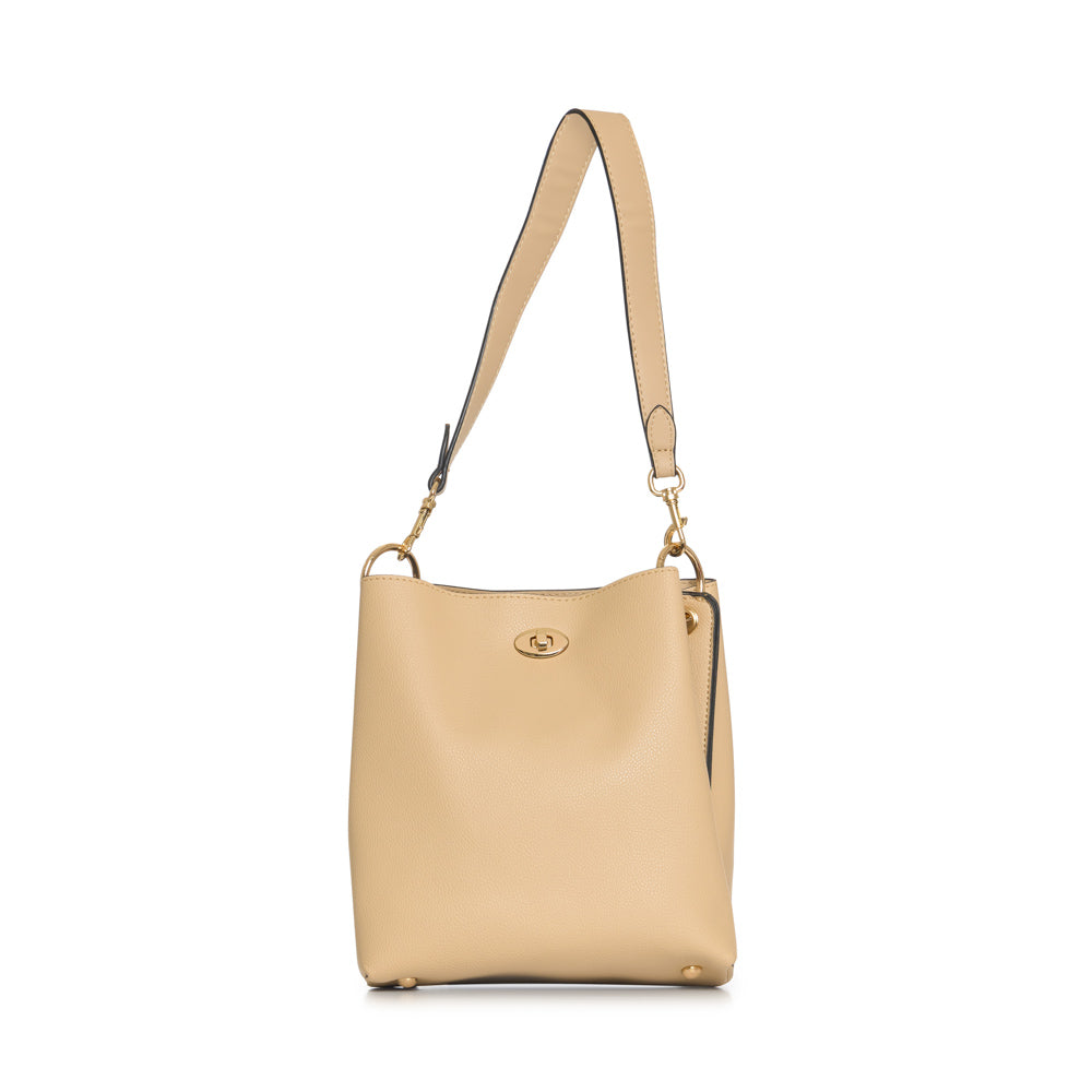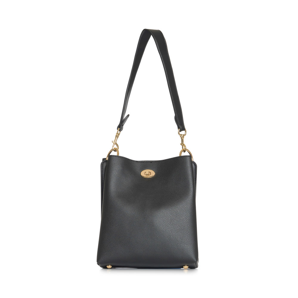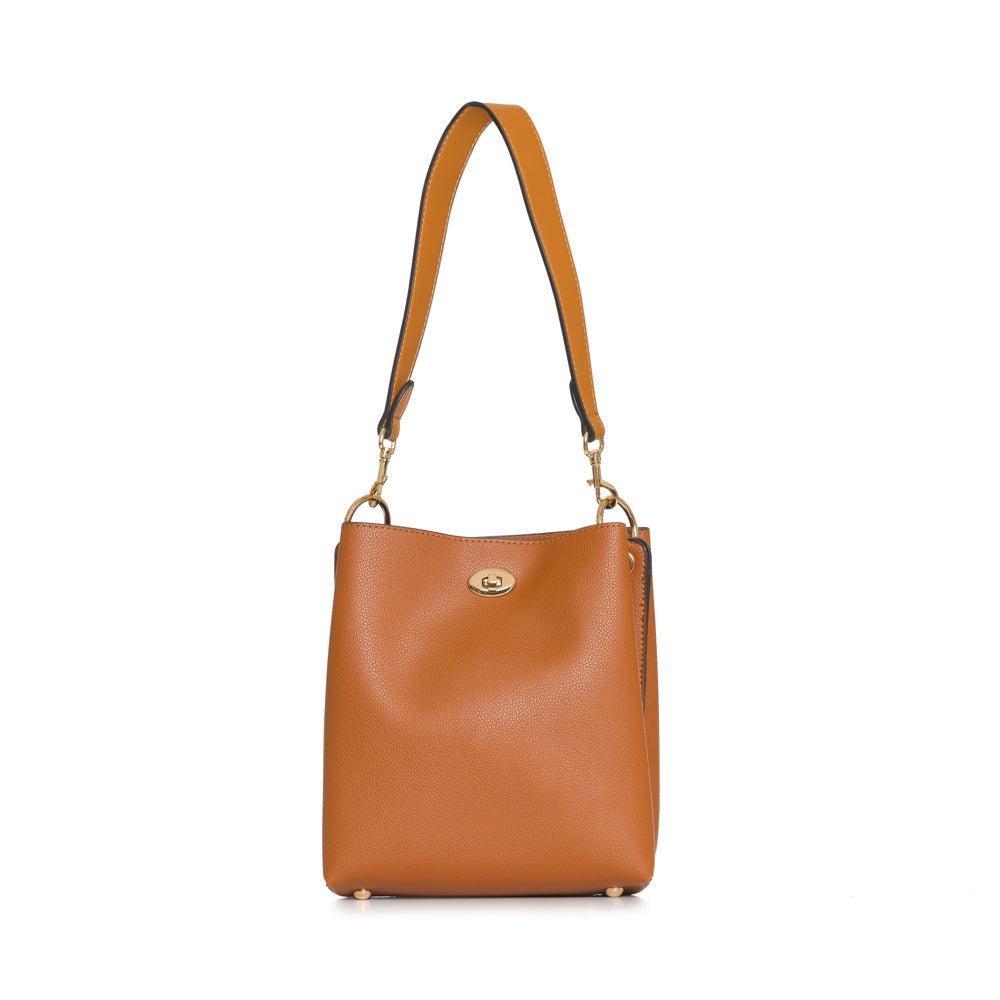 Chic faux leather crossbody handbag with adjustable and detachable strap. 8 1/4"L x 5" x 9"H