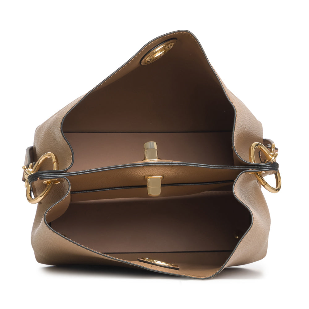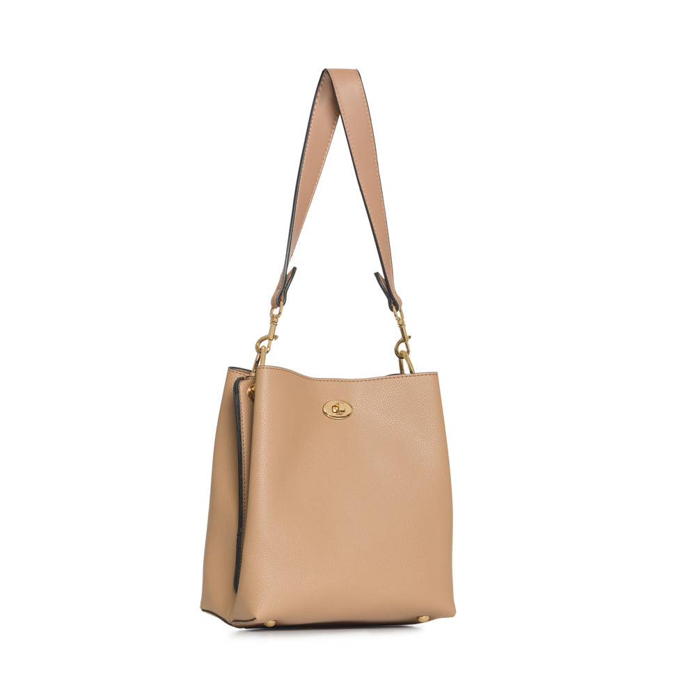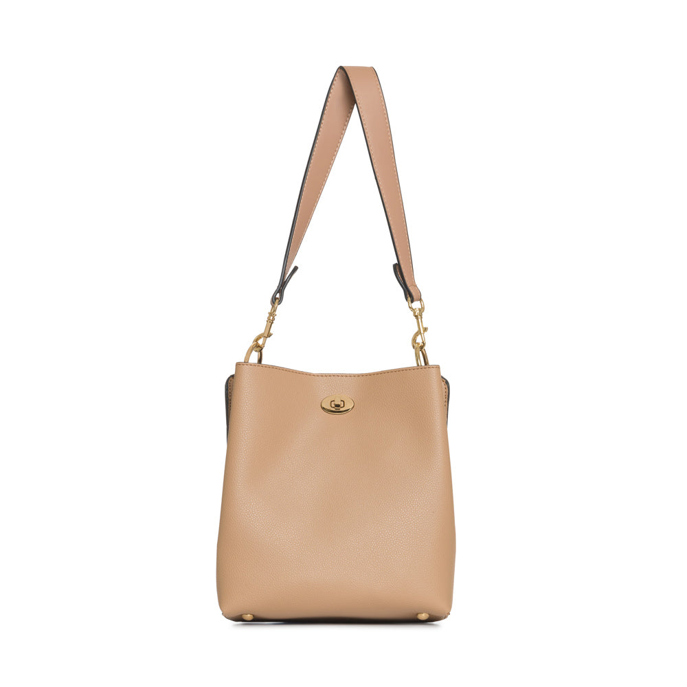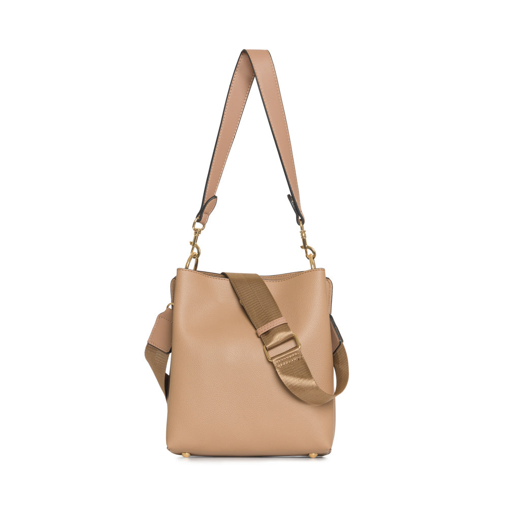 Chic faux leather crossbody handbag with adjustable and detachable strap. 8 1/4"L x 5" x 9"H