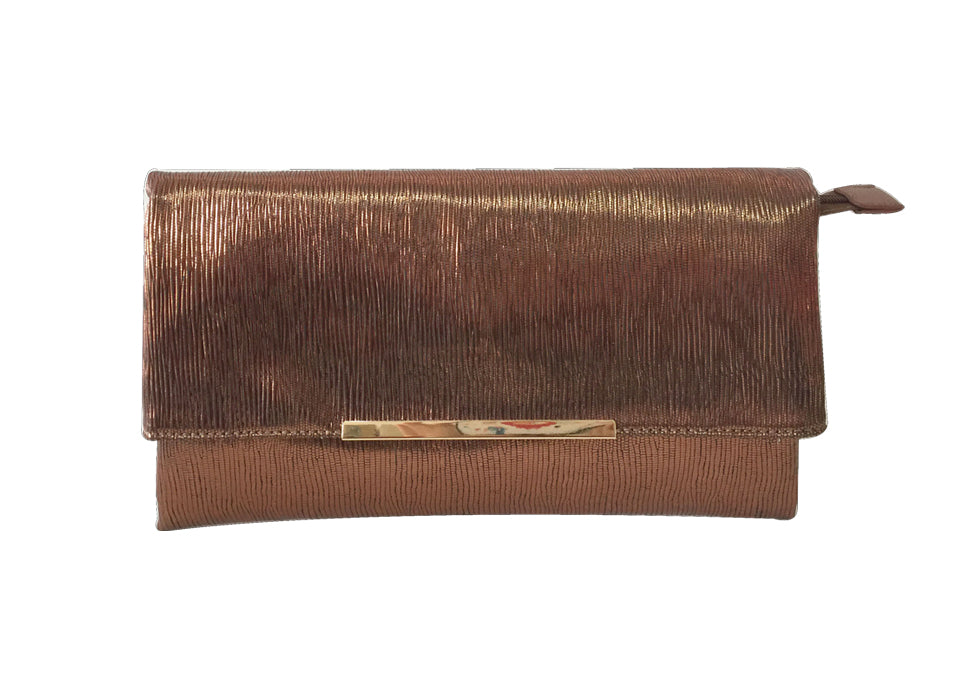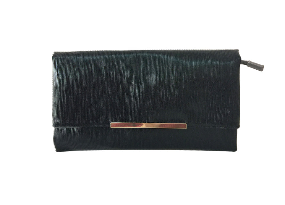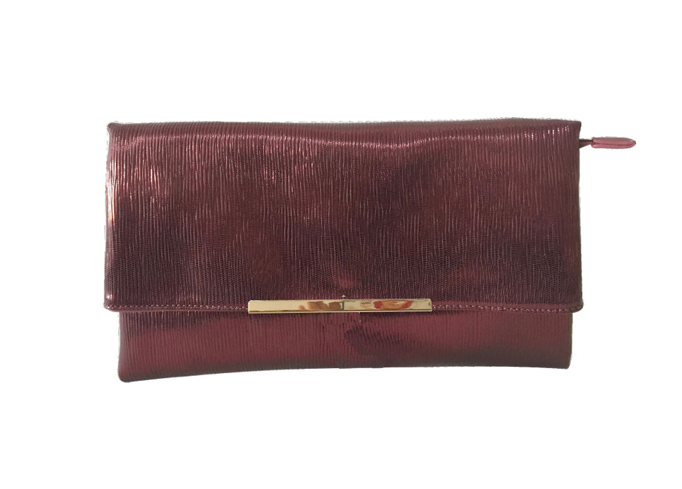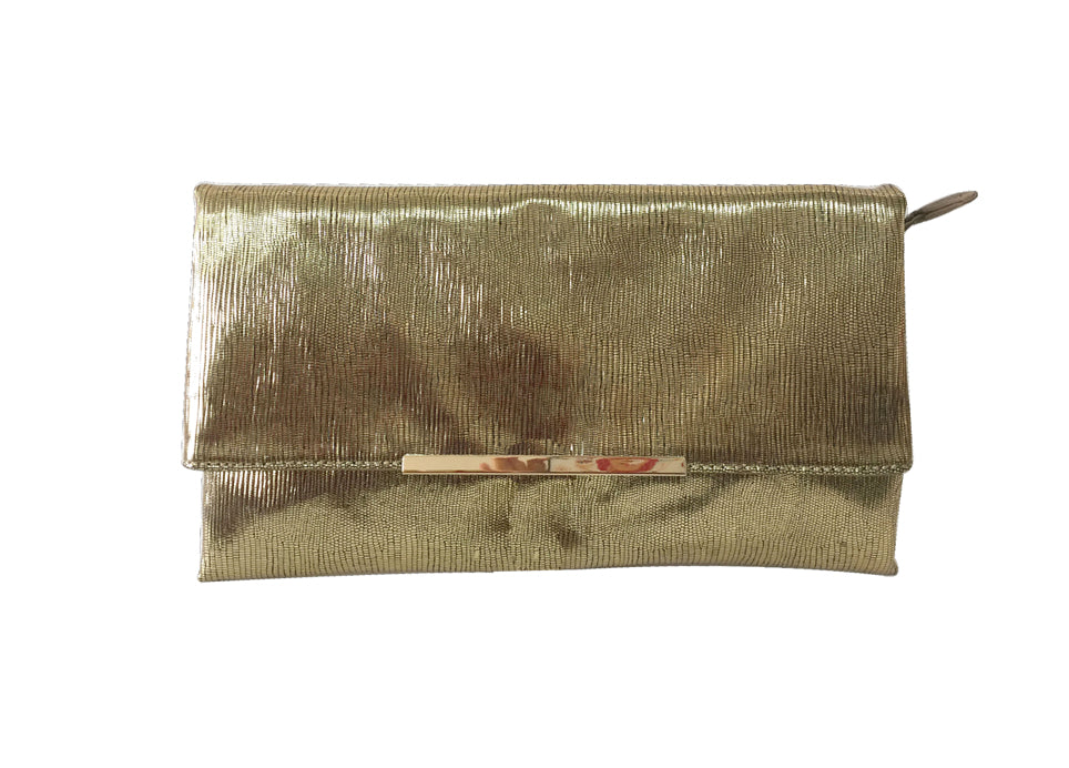 Ladies chic and formal hand pouch crossbody purse made with soft polyurethane outer material and polyester inner lining. Gold tone chain detachable shoulder strap. 13.75" x 1" x 7"