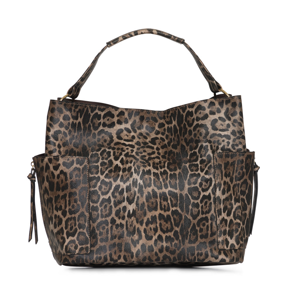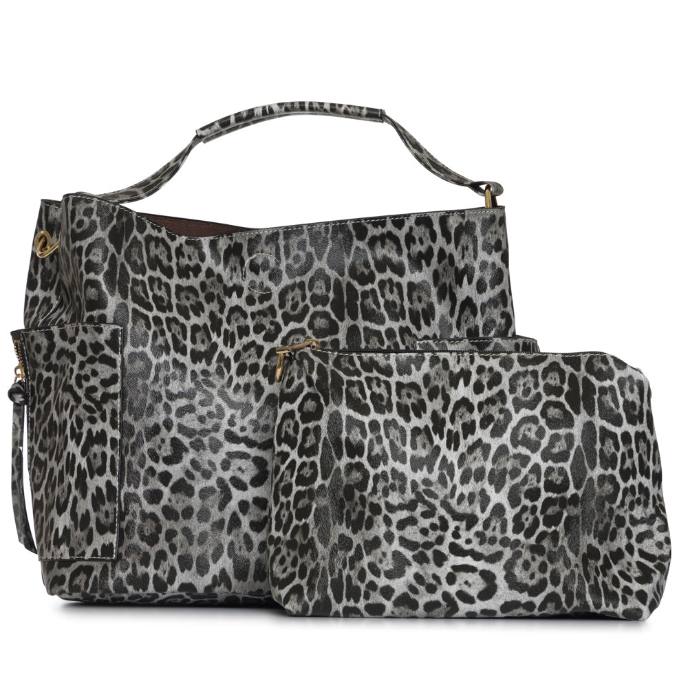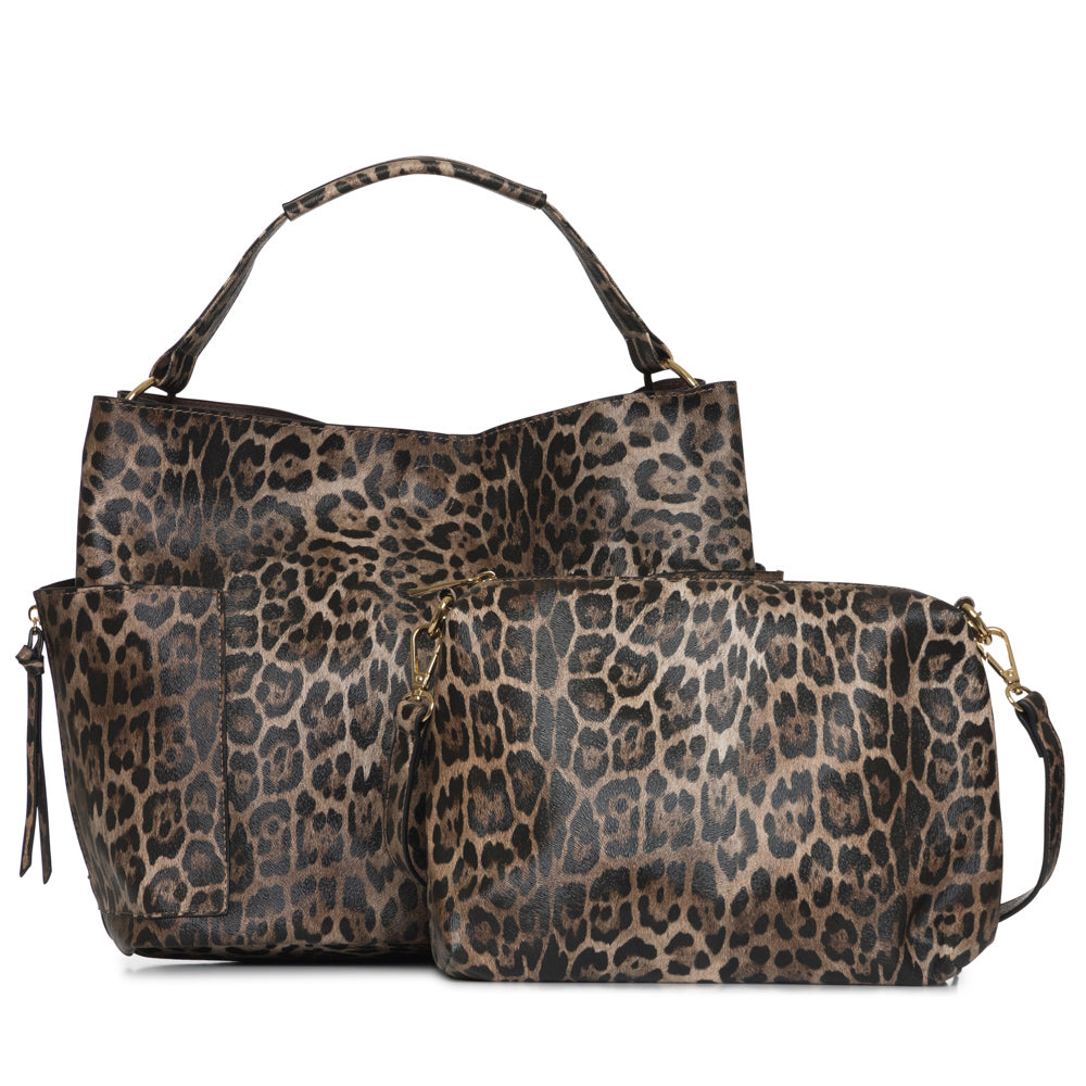 2 in 1 Leopard hobo handbag with matching crossbody. Peta approved. Big: 16"L x 7 1/4"W x 8 1/2"H Small: 13"L x 3 1/2"W x 8 1/2"H