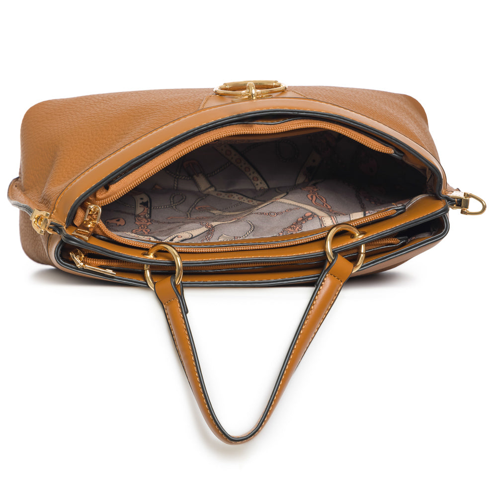 Women's faux leather tote crossbody bag with adjustable strap. 12"L x 4 7/8"W x 8"H